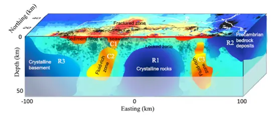 Figure 1: Three-dimensional image of the subsurface structure beneath the Marmara Sea derived from the magnetotelluric (MT) data. Warm colors indicate weak zones where faults can slip more easily, while cool colors show strongly locked zones. (After Kaya-Eken et al., 2026, Geology)