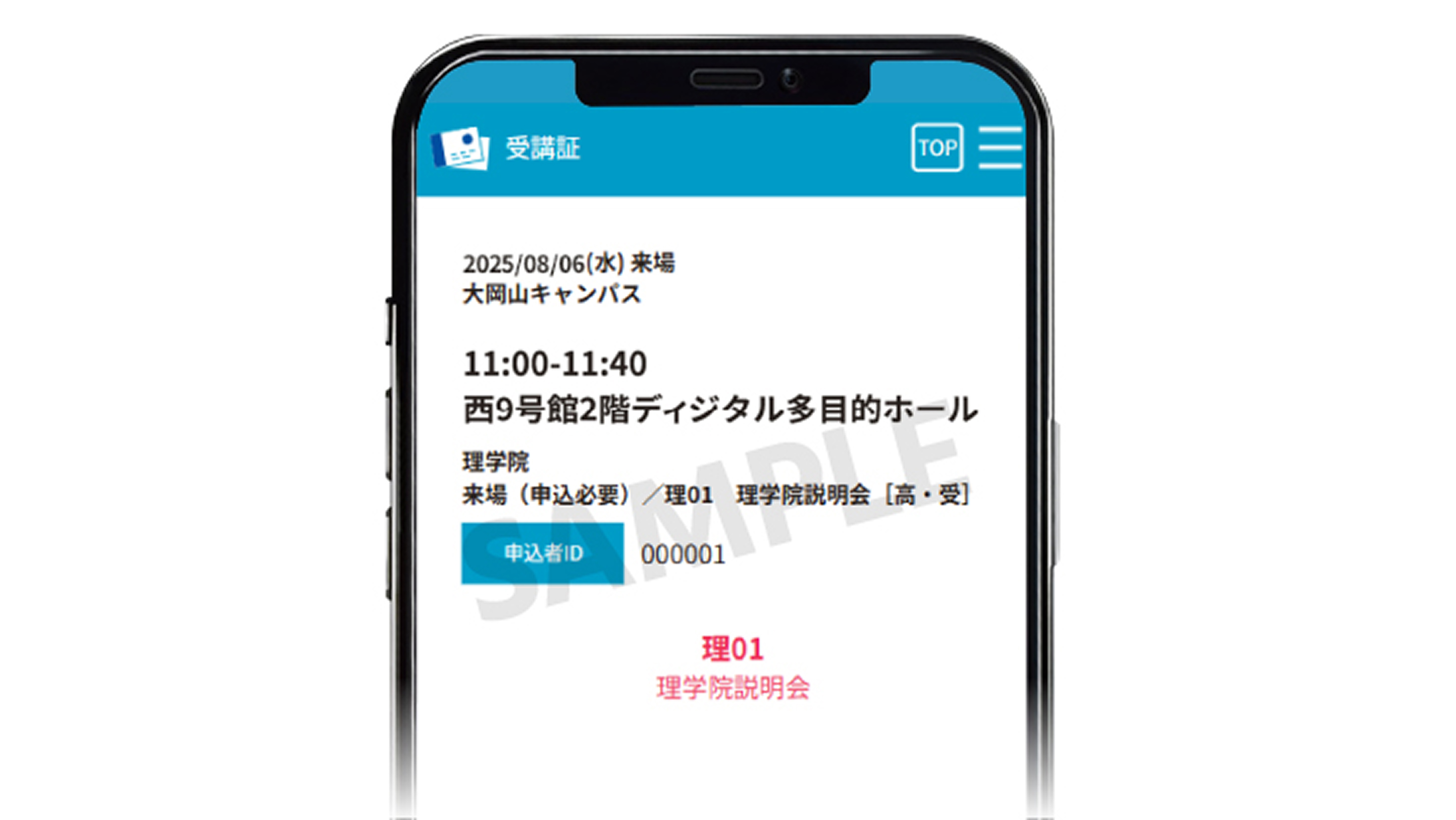 「申込者ID」を控えた上で、ご自身の氏名と受講証が表示された画面を紙にプリントアウトしたものをご持参いただき、各プログラムの受付で提示してください。