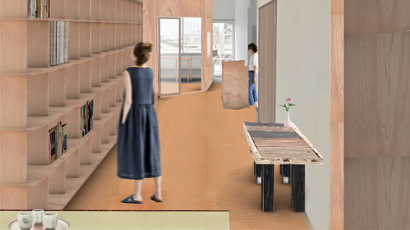 シェア型書店、ミニ図書館(研究者・学生の選書棚)、Podcast 公開収録ブース、コーヒーコーナー等を備えた大学と地域の交流スペースで構成されます。