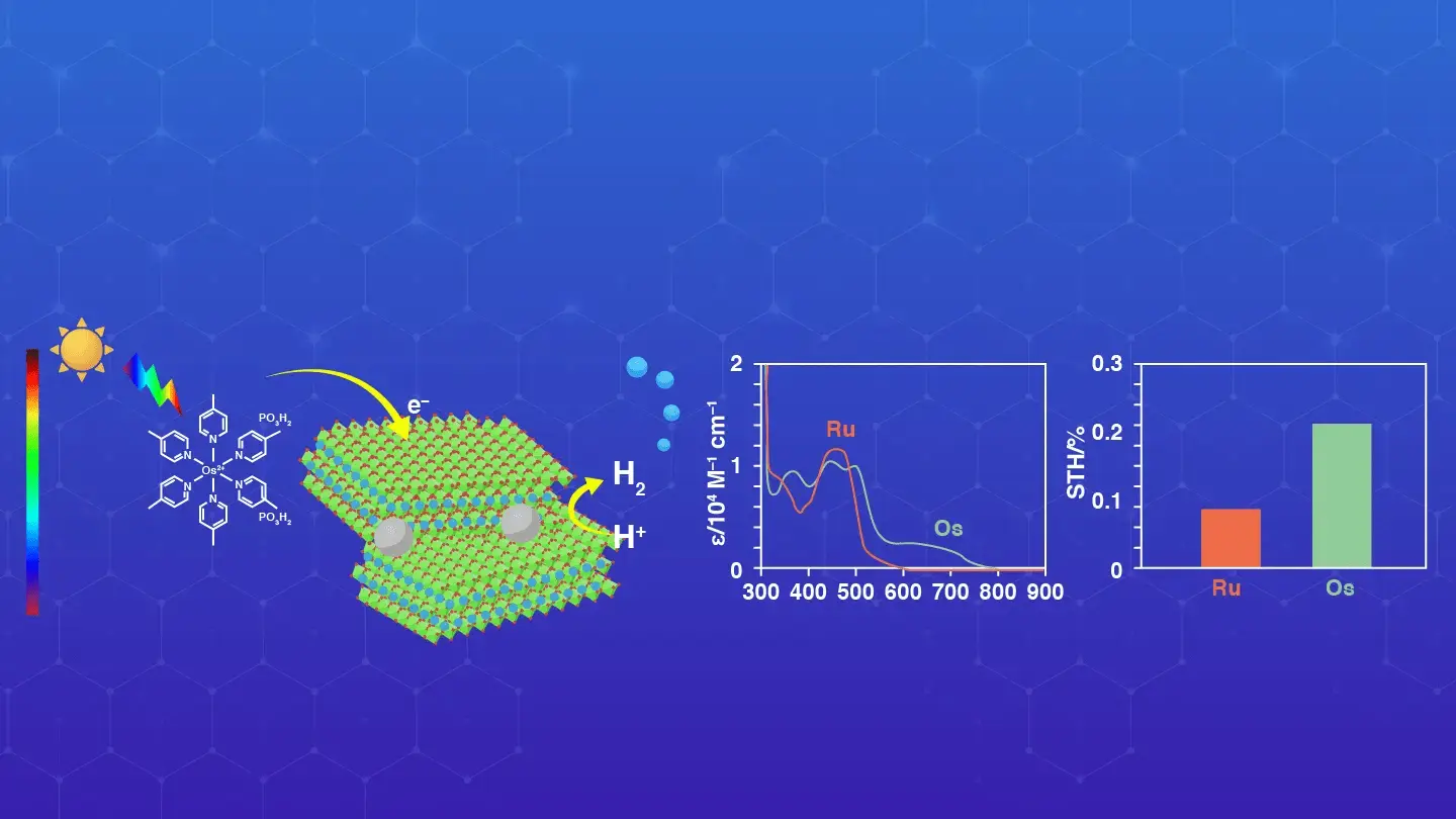 A novel dye-sensitized photocatalyst developed at Science Tokyo enables the capture of long-wavelength visible light for efficient hydrogen conversion, surpassing conventional photocatalysts. By replacing the metal center of traditional complexes with osmium, the researchers achieved a photocatalyst that can absorb light with wavelengths beyond 600 nanometers. This shift in the absorption profile enables the system to harvest a broader range of the solar spectrum to enhance hydrogen-evolution performance.